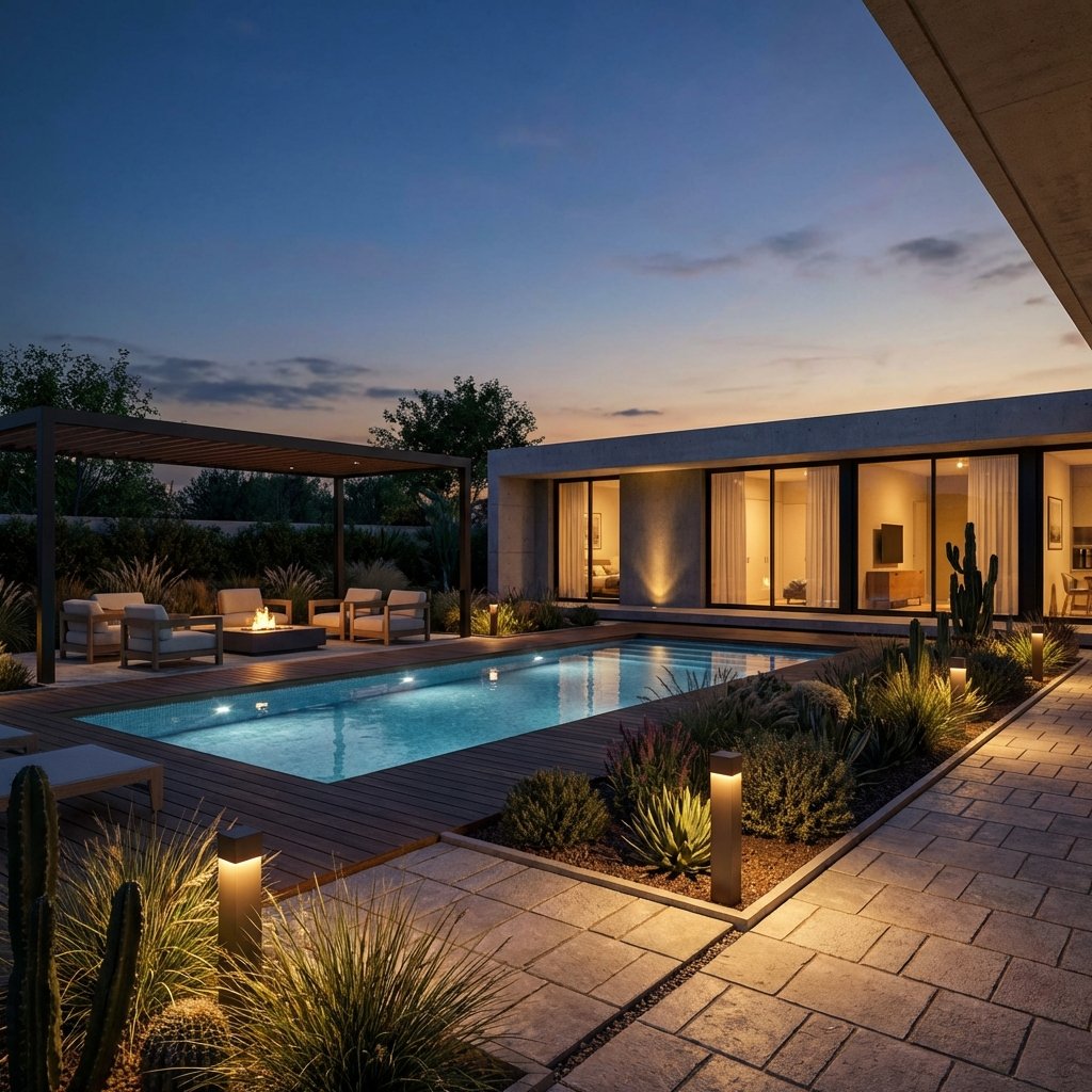 Plantas nativas, sistemas de riego automatizado y materiales duraderos. Menos trabajo, más disfrute. Ideal para el ritmo de vida actual.